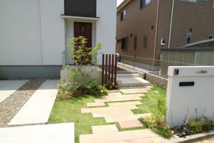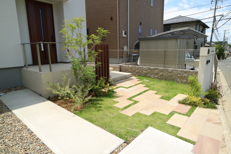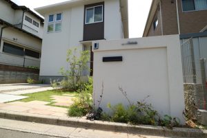 白井市の新築工事、とうとう完成しました!! 2017.05.25 ポストや表札などの必要なアイテムは道路境界線ギリギリに造作したデザインウォールに全て取り付けました。凹みを表現するため、二種類の厚みのブロックを用いて作っています。 駐車場は車が乗り上げる位置にのみコンクリートを打設し、隙間を化粧砂利で埋めました。灰色以外の色があると、カースペースも華やいで見えます。 出来上がった前庭は、シンボルツリーや芝生も見事に融合し、ナチュラルモダンな雰囲気になりました。シンプルかつ可愛らしいデザインで、愛着の持てるお庭へと大変身しましたね! お客様アンケートの一覧はこちらから Categoryカテゴリー VOICE REPORT COLUMN INFO