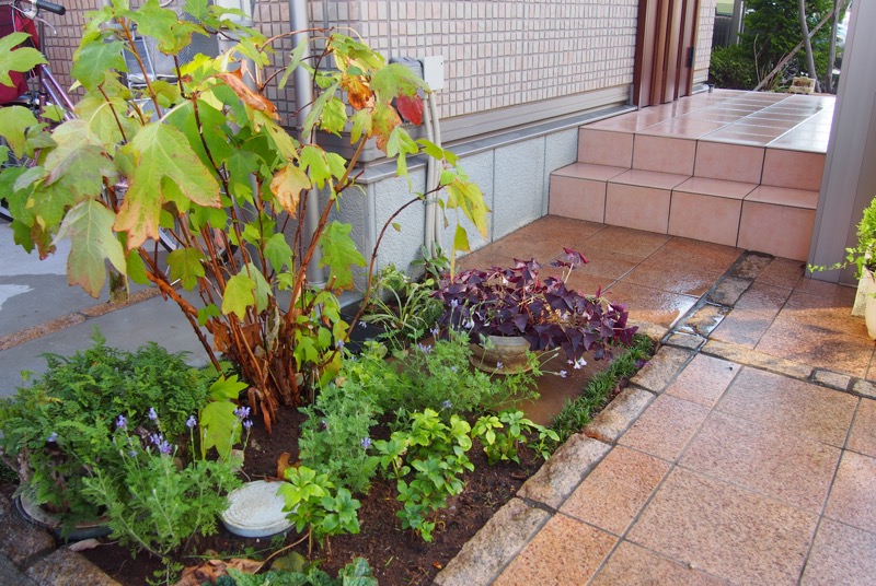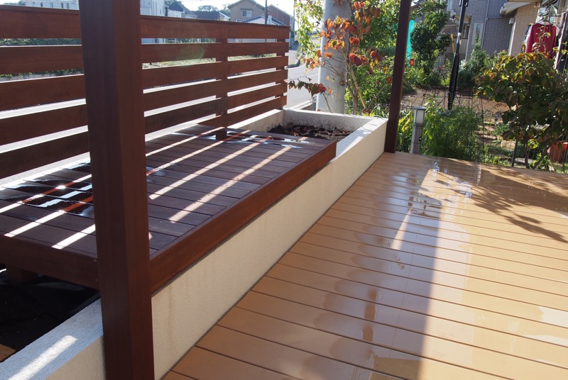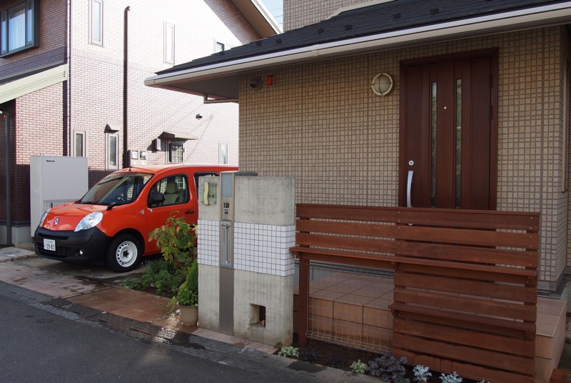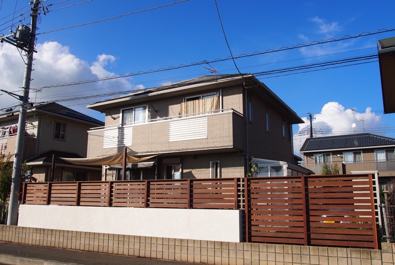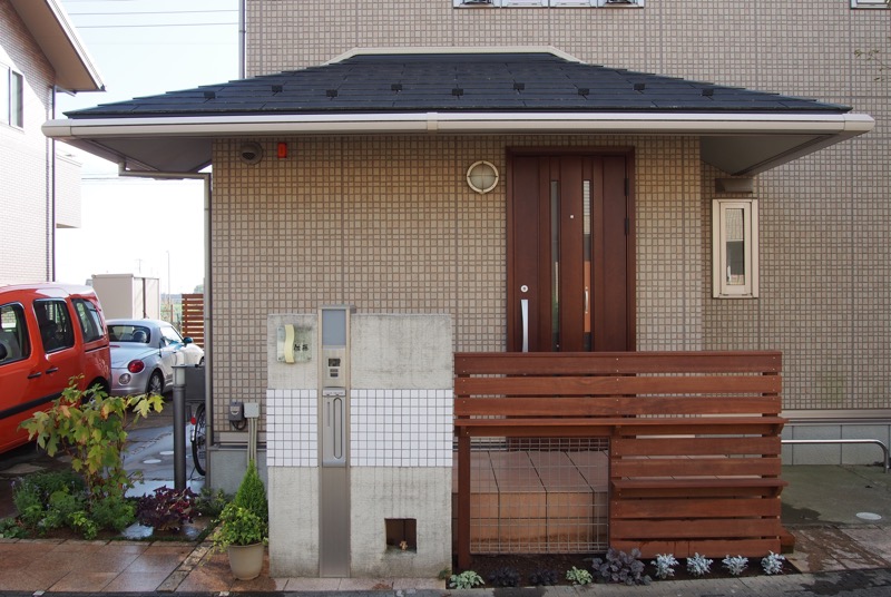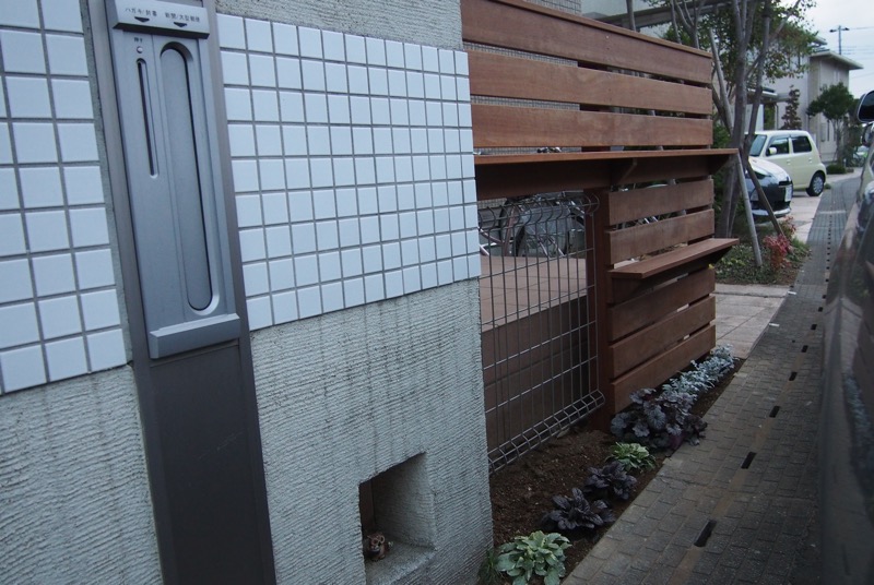 道路境界線からほど近い玄関をカバーするために、ウリンでフェンスを設けました。モダンな雰囲気が門まわりにプラスされ、従来にはないナチュラルテイストなエクステリアになりましたね。