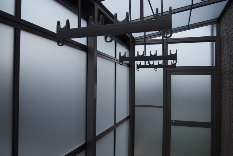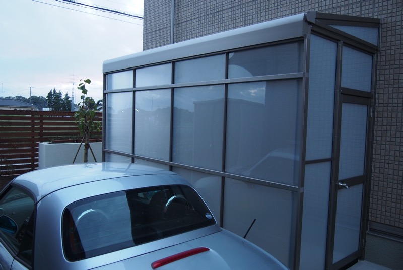 コンパクトなサイズのサンルームは洗濯干し専用スペース。光を通しながらも風は通さないので、砂や埃が洗濯物につく心配はありません。夜は背の高いポールライトがお庭全体を照らしてくれるので、暗くなってもご家族揃ってアウトドアリビングを楽しめますね。