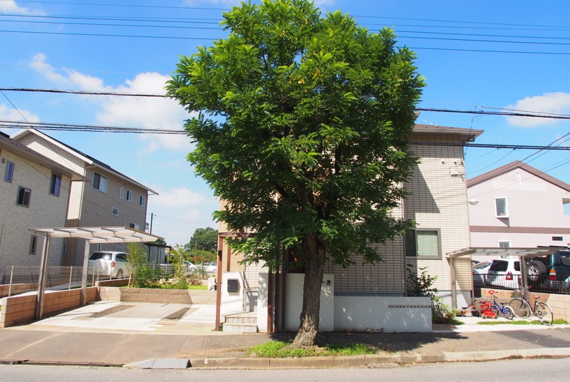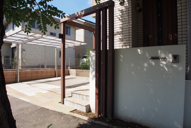 天然木のゲートと白い塗り壁を用いて造作したファサードには、視覚的にボックス状に仕切られた空間ながら爽やかで開放感のある印象付けを試みました。立派な街路樹も借景になり森の中に佇んでいるかの様なエントランスがナチュラルな雰囲気を醸し出しています。