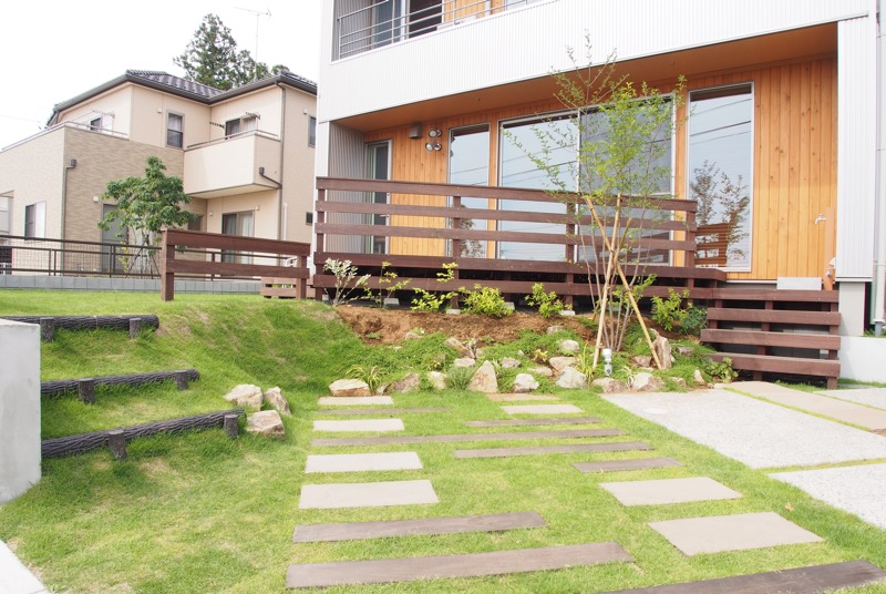 天然の木材や芝を使ったアクティブ感満載なオープンガーデン
