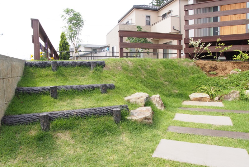 自然に触れながら元気いっぱい遊べるエクステリアの完成です。
