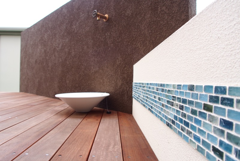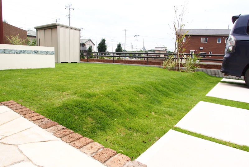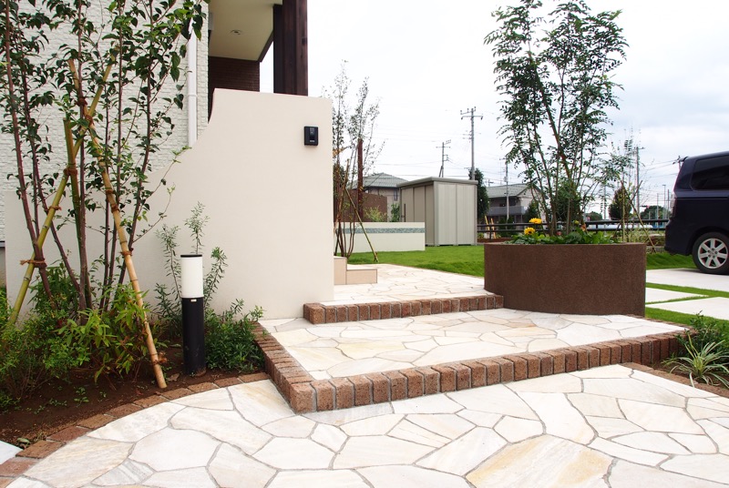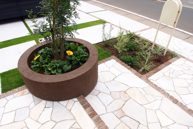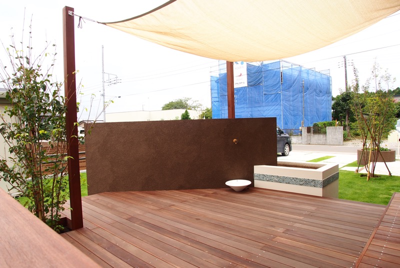 家の外壁とイメージを合わせたエクステリアは、家と庭の一体感が感じられるデザインですね。