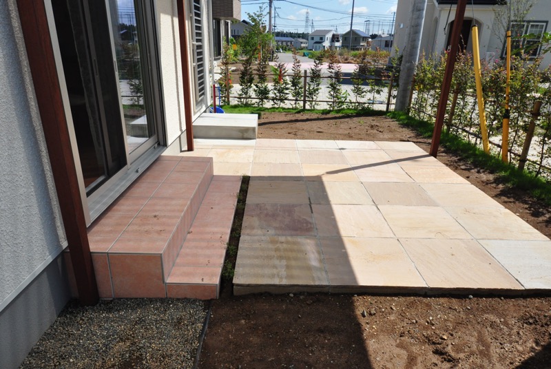 デッキは掃除のし易いように大きなサイズの自然石で造作しています。