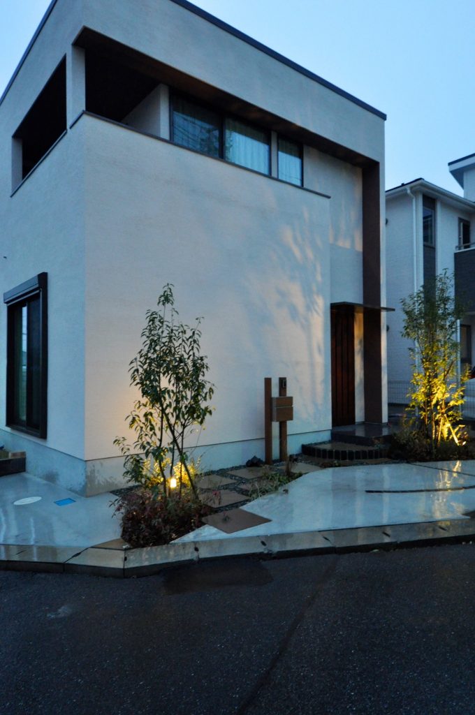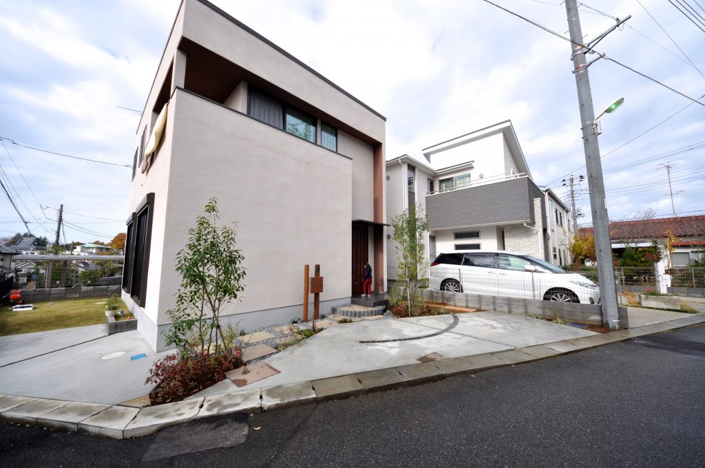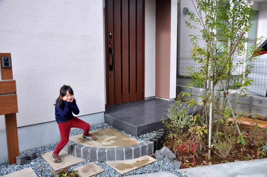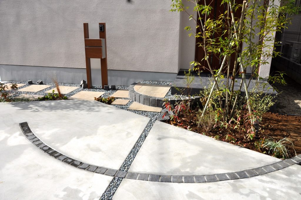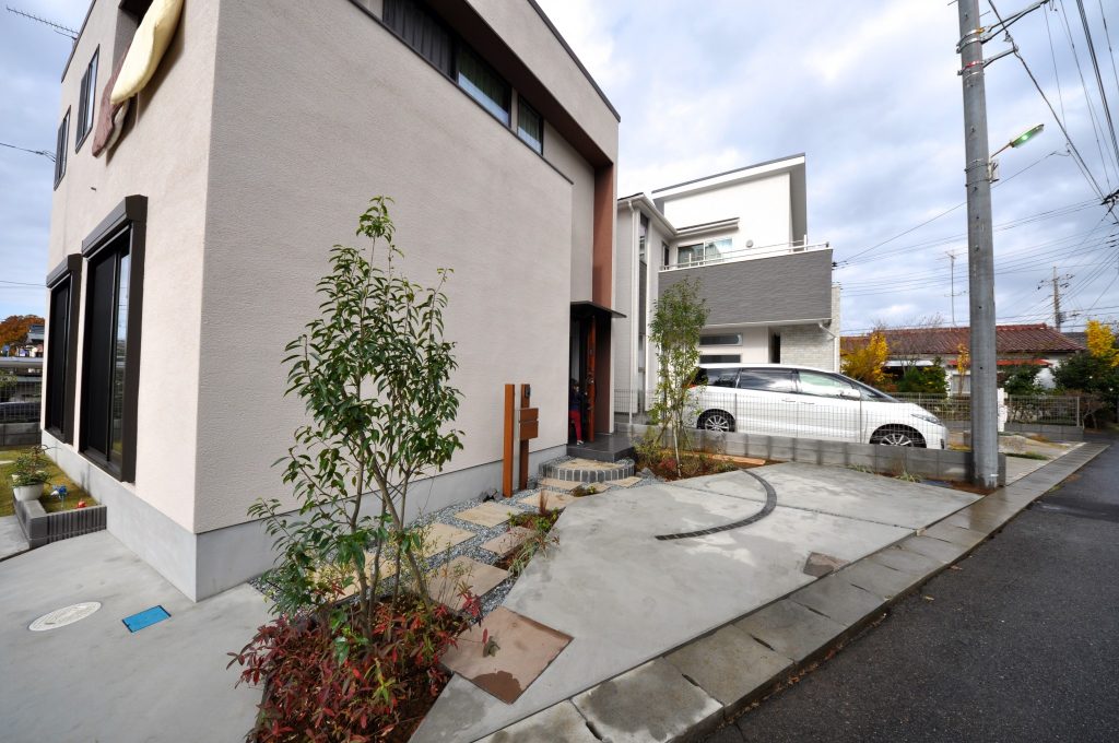 お施主様のイメージでは当初「駐車場を優先すると植栽スペースが確保できなくて・・・」と言うお話でしたが、動線をしっかりと想定することで植栽スペースを確保し、無駄なコンクリートの土間を減らしました。
