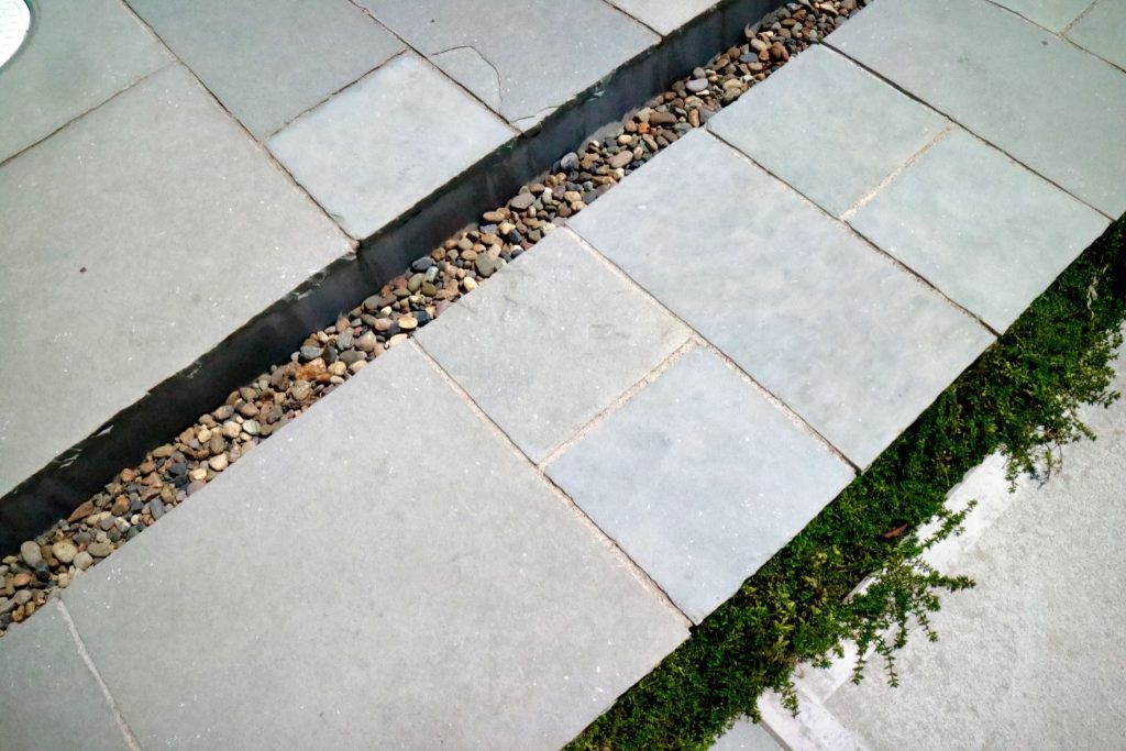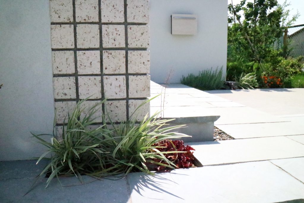 一見無機質で冷たく感じられがちな寒色系の石材も植栽のグリーンと合わせる事で、潤いをまとったとてもクールでスタイリッシュな印象になります。