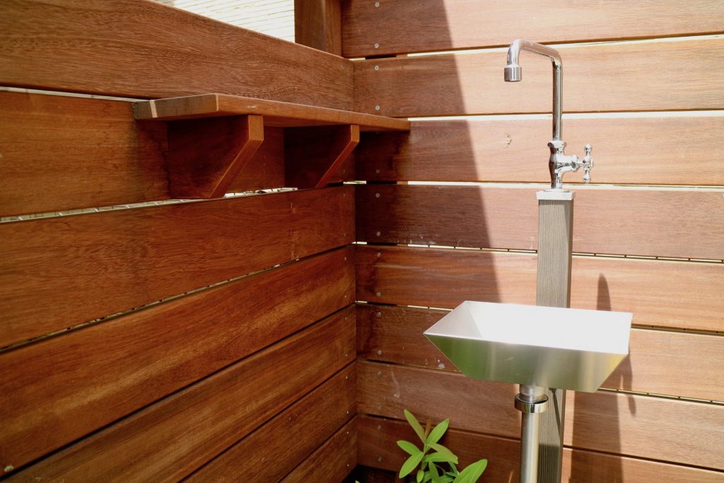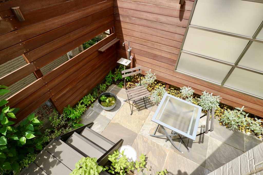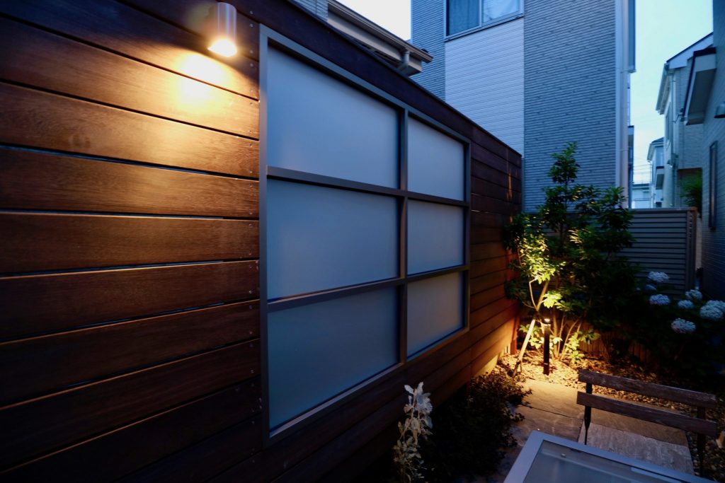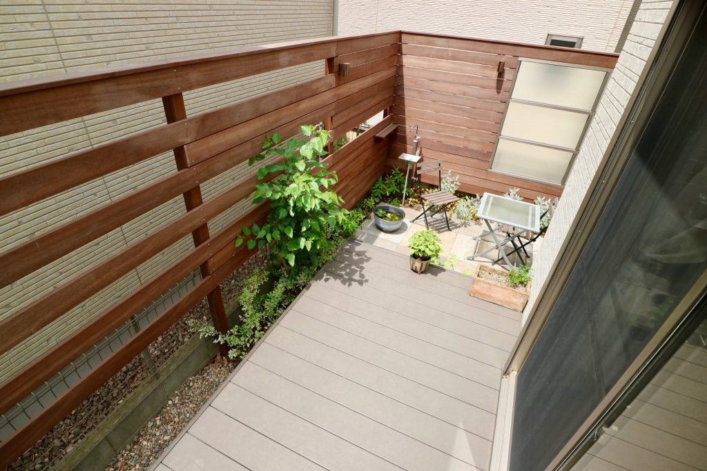 そこで、既存樹脂デッキで過ごす時に気になる二方向にはウッドフェンスを設置し、お隣のお勝手口への採光性も確保しておきたいと言うオーナーのご配慮には、窓に見立てたポリカパネルを設置してお応えしました。