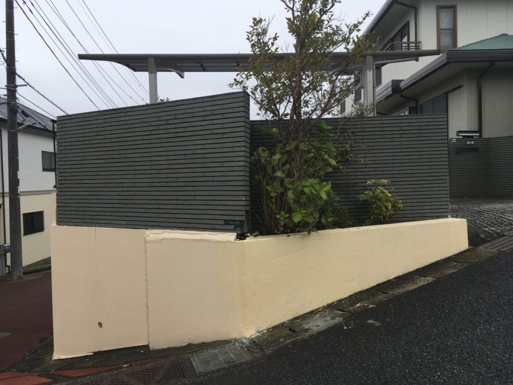 道路沿いの壁に車をぶつけられて壁が壊れたりタイルが剥がれたりしてしまったと言う事での復旧工事のご相談でした。