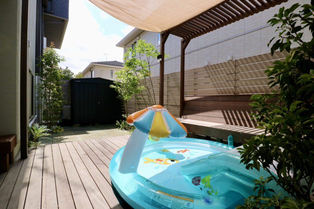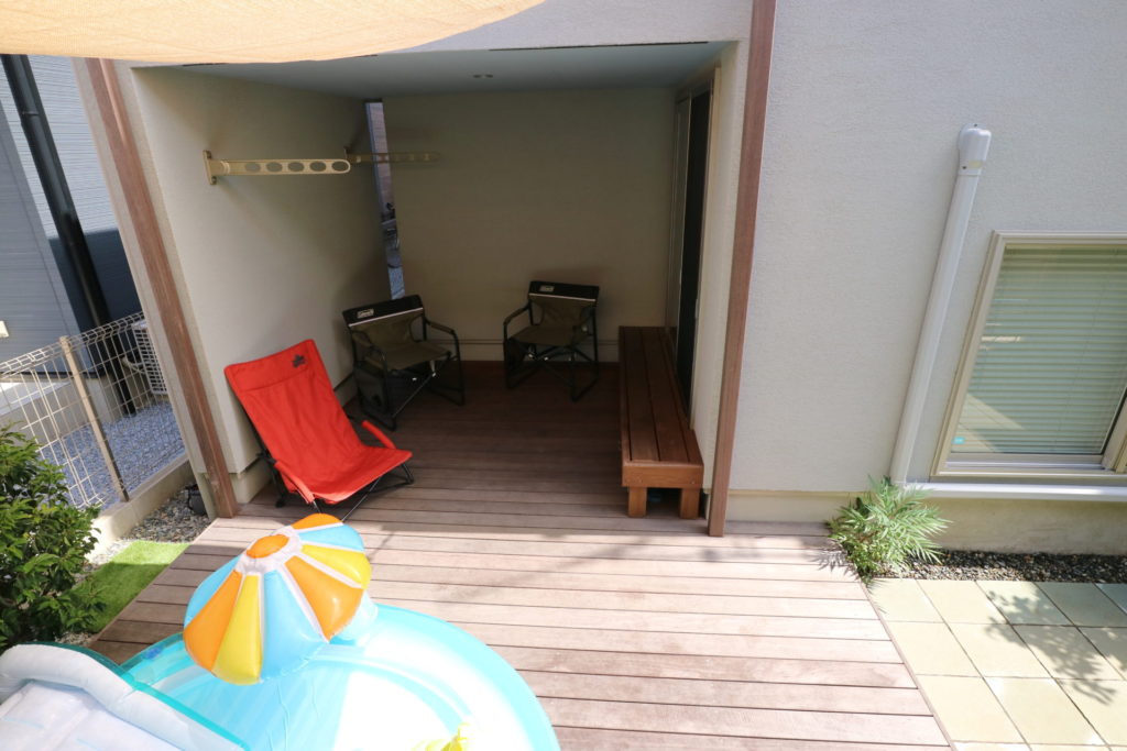 「座り心地抜群のゆったりベンチ」と「すっきり広々ローデッキ」で憩う家族の庭時間