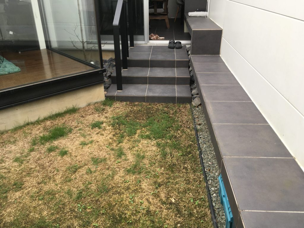 オーナー様ご自身も植栽の生育環境としてご懸念を抱いていらっしゃいましたので、芝生を撤去しての総床ウッドデッキ化をご採用いただきました。