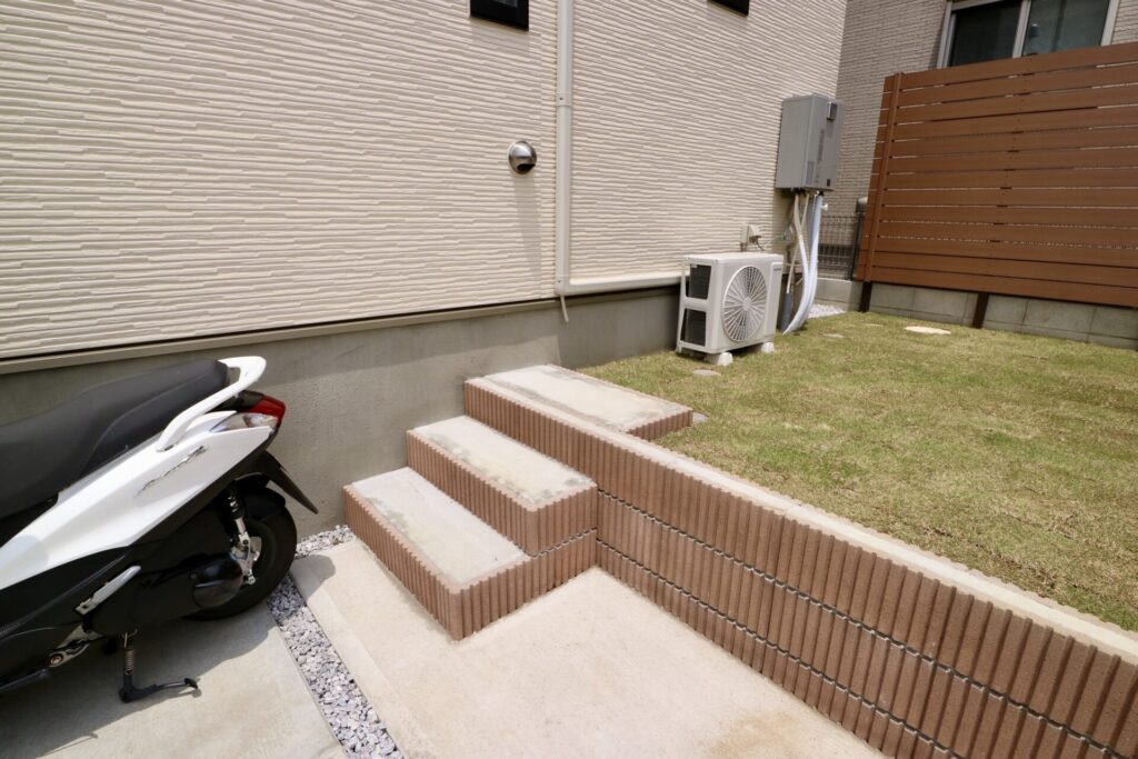 例えば、道路側にある土留めが既設物としてありましたので場内に折り返した形を追加設置したり、駐車場奥の既設土留めに対して階段を追加設置したりしましたが、庭として活用できるスペースが2つのエリアに完全に分かれてしまっておりましたので、その使用イメージや動線の考え方をオーナー様と共有しながらベストな形を模索しました。仕上がってみれば何のことはない地味な部分ではありましたが、これから長くお住まいになっていただく上ではとても重要なお話だったと思います。