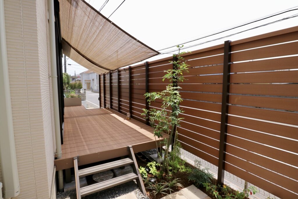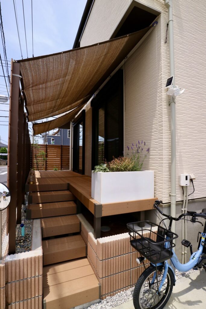 オーナー様DIYの日除けも大活躍し、お庭でもお部屋でもとても快適に過ごせる様になったと喜んでいただけました。