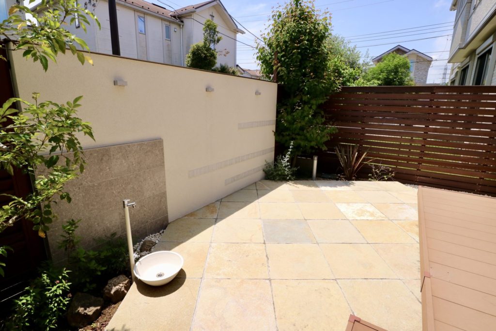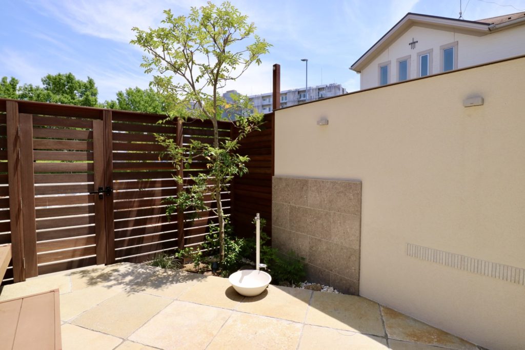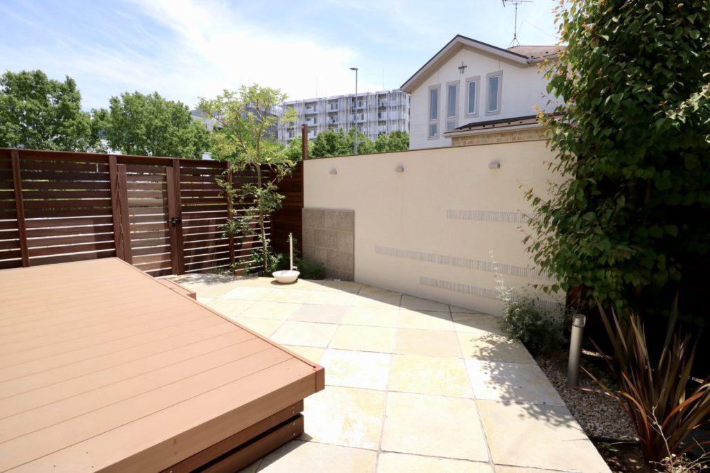 道路の往来を気にする事なく楽しんで過ごして頂けるお庭になりました。
